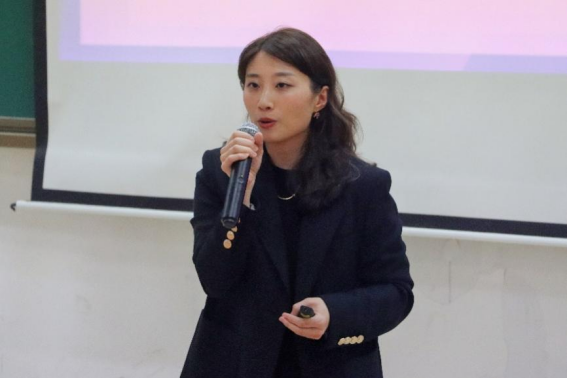 宣讲会开始,吴津钰老师上台致辞,他提出KDC拥有着完善的培训体系和广大的晋升空间,能够促进同学们知识技能的提升和职场经验的累积,劝诫同学们要珍惜这次的求职机会。