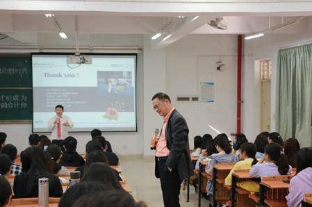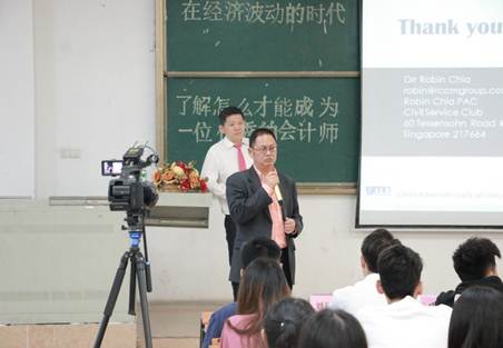 讲座上,谢秋明博士表示随着中国经济的不断发展,未来中国对注册会计师的需求量还将进一步扩大,一位优秀的会计师必须走向国际平台。谢秋明博士主要从“未来发展道路、所面临的挑战和国际化公司的要求、优秀的会计师的要求”等方面切入,结合当前会计行业的现状和自己的工作经历,对如何能成为一位优秀的会计师这一问题进行了深刻、全面、精准的阐述,对在座的老师和学生有很大的启发和指导意义。