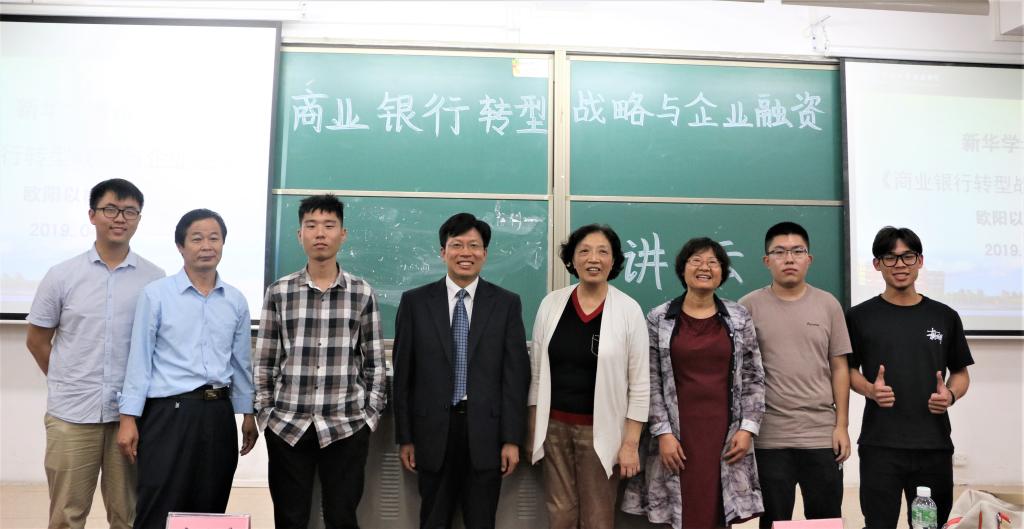 2019年4月15日晚上,由太阳成集团tyc7111承办的新华学者讲坛——“商业银行转型战略与企业融资”在东莞校区定静楼②A201教室精彩开讲。此次讲座邀请到了暨南大学管理学博士、高级经济师欧阳以标老师做主讲嘉宾,太阳成集团tyc7111党总支书记张丽拉教授、副院长李安兰副教授、财务管理专业副主任熊诗忠、学院办公室主任吴津钰以及百余名师生共同参加了本次讲座。
