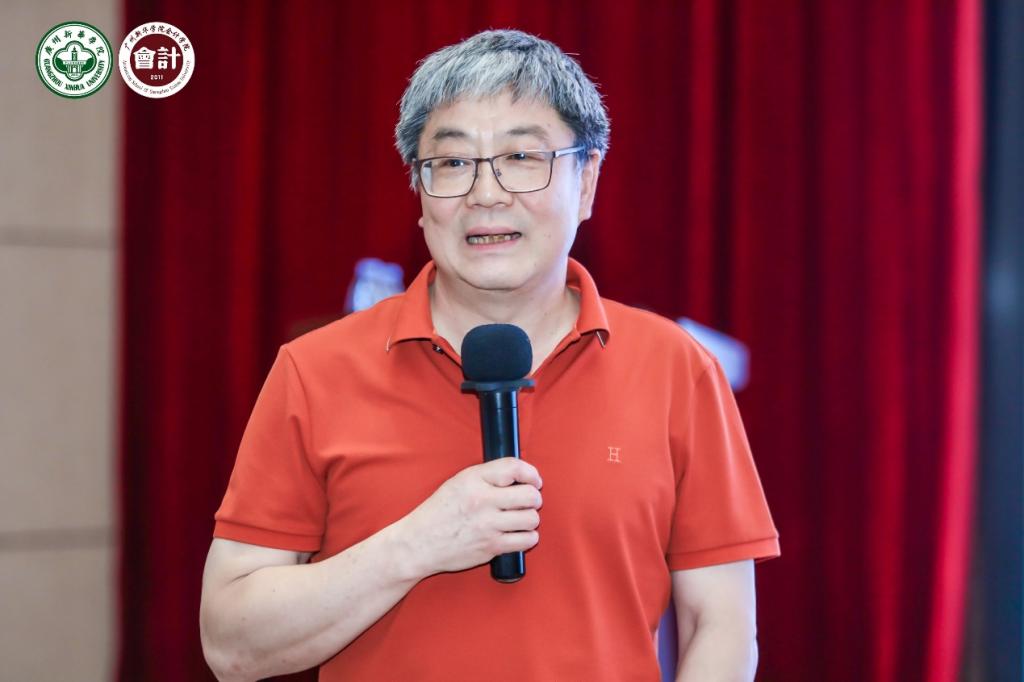 王华教授,广东外语外贸大学南国商学院执行院长,发表了《智能环境下会计教育变革的几点思考》的演讲。王教授指出,科技进步特别是互联网与AI技术正深刻改变会计教育,学习途径不断扩大,传统教学方式正在被颠覆。他强调,高校不仅需要改变会计教育的目标,由知识本位型向能力质量型转变,促进学科交叉融合,适应AI时代需求,重塑会计学科结构。同时还应当关注基于数智时代会计基本理论的构建,不断扩展AI时代的会计学科形态,以新质生产力为动力发展类会计学科,培养具有科学精神的复合型会计领军人才。