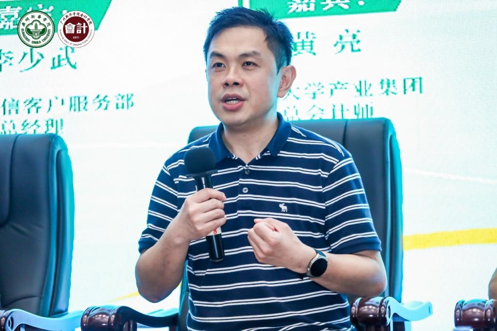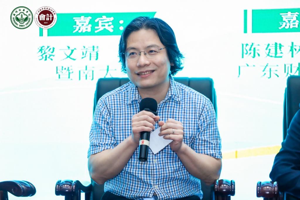 嘉宾黄亮先生分别从微观和宏观两个角度出发分享观点。他认为,在微观方面,会计领军人才需立足岗位,管好队伍,筑牢行业发展基础;在宏观方面,会计领军人才要积极参与政策制定与国际准则讨论,发出大湾区领军的声音。