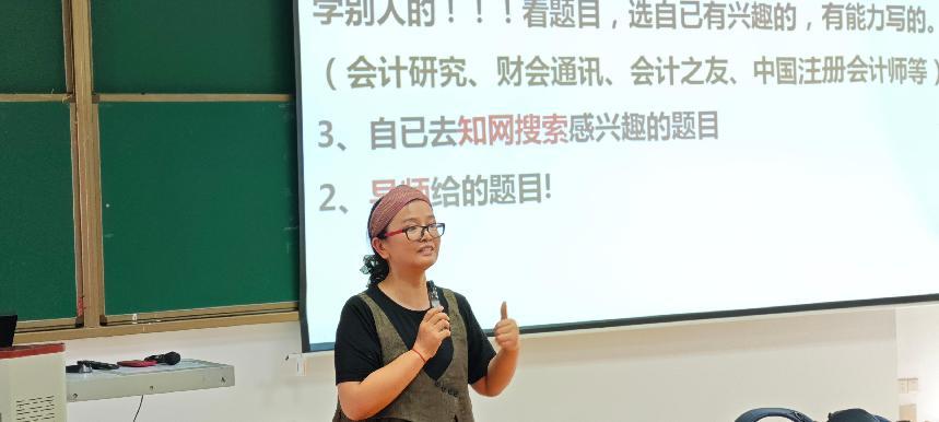6月10日晚上,会计学专业的毕业论文指导讲座在教学楼定静二举行,由庄婉婷副教授担任主讲。庄教授从论文写作全流程切入,着重讲解选题环节。首先,她提出,选题需扎根专业,紧扣社会热点,如当下数字化转型对会计核算、财务管控的影响等方向,能让论文贴合行业需求。对于创新,接着,她鼓励同学们敢于突破,无论是修正传统理论认知,还是整合不同观点形成新见解,都值得尝试。同时,强调兴趣驱动,建议大家从感兴趣的会计细分领域,如成本会计优化、财务共享中心建设等入手,保持写作热情。最后,她在写作条件上,提醒同学们结合所学知识与可获取的资料,像企业财务数据、行业报告等,保障研究的可行性。讲座中,庄教授结合会计学专业特点,用生动案例剖析选题误区,指导同学们如何将专业知识与实际问题结合,为会计学专业同学搭建了论文写作的框架,明晰了努力方向。