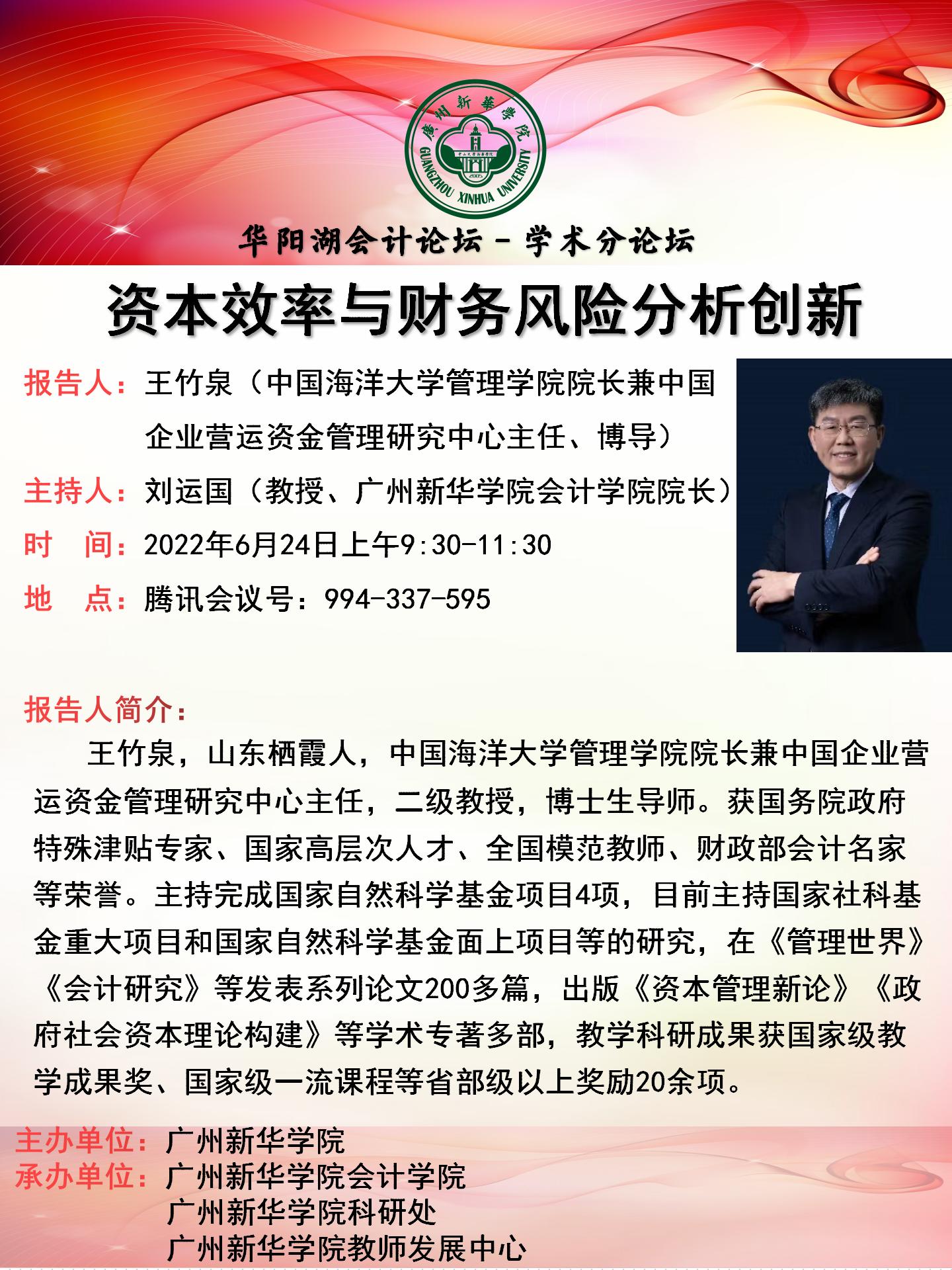 【华阳湖会计论坛】讲座预告-资本效率与财务风险分析创新