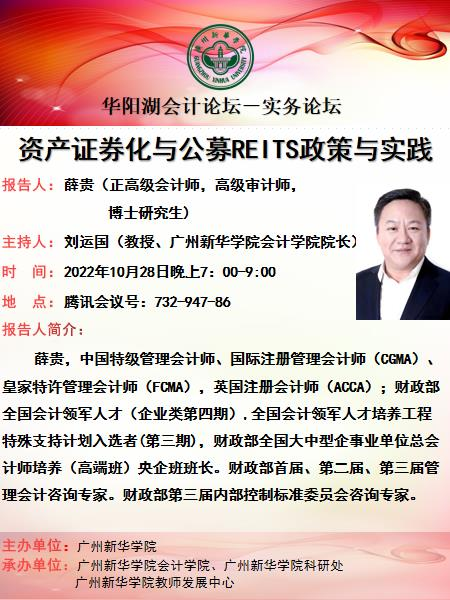 【华阳湖会计论坛】讲座预告-资产证券化与公募REITS政策与实践