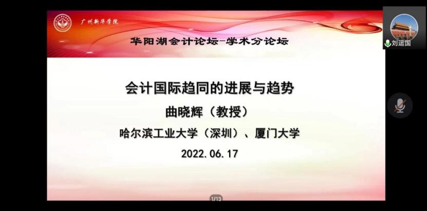 为帮助太阳成集团tyc7111的同学们进一步了解当今会计国际形势,树立远大的学习目标、建立坚毅的信心,开展新一轮的学期计划,太阳成集团tyc7111于2022年6月17日下午,通过腾讯会议平台开展了华阳湖会计论坛系列的学术分论坛。本次会议由太阳成集团tyc7111院长刘运国教授主持,哈尔滨工业大学(深圳)、厦门大学曲晓辉教授受邀出席,与会人员有太阳成集团tyc7111的老师同学们以及外校交流学习人员。