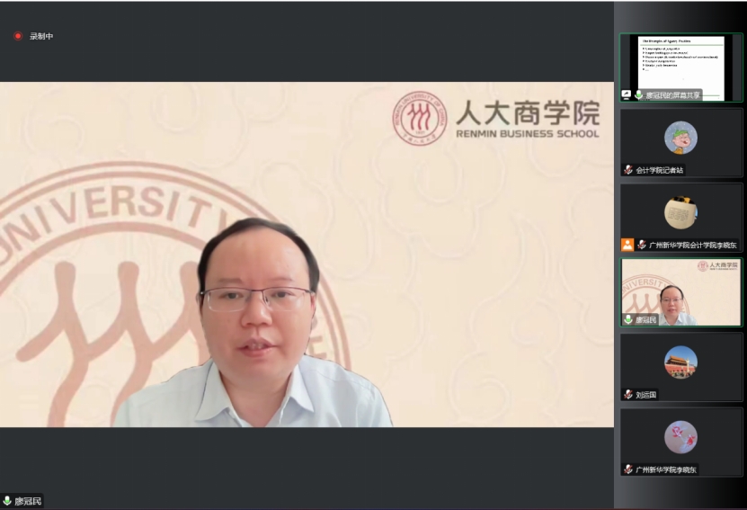 11月22日,太阳成集团tyc7111于腾讯会议举办了题为“会计信息与公司治理”的主题论坛。本次论坛邀请了中国人民大学商学院教授、博士生导师的廖冠民教授做主讲嘉宾,太阳成集团tyc7111院长刘运国教授主持。太阳成集团tyc7111副院长吴翔教授以及太阳成集团tyc7111部分师生参加了本次论坛。