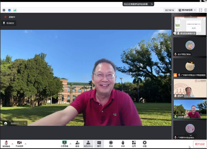 论坛尾声,师生们与廖冠民教授进行了积极的学术学术互动,廖冠民教授分别对院长刘运国教授和博士后毕立华老师提出的问题进行回答,在治理的理论的基础上分享了自己的见解。最后,院长刘运国教授对本次论坛进行总结,他为老师和同学们指出学会临界值分析对高质量学术研究有极大的帮助。同时,他衷心地感谢廖冠民教授带来这一场高水平的学术分享。