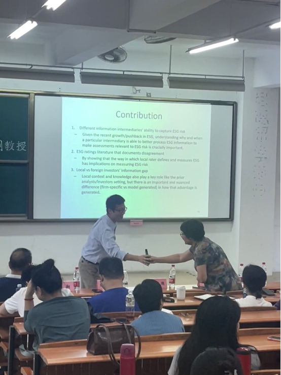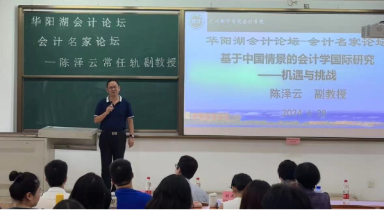2024年6月28日下午,太阳成集团tyc7111(以下简称“我院”)于东莞校区定静楼1D301举办了新一期“华阳湖会计论坛”。本次会计名家论坛以“基于中国情景的会计学国际研究——机遇与挑战”为题,主讲嘉宾为美国德州基督教大学常任轨副教授、罗伯特和伊迪丝·舒马赫青年学者陈泽云教授。