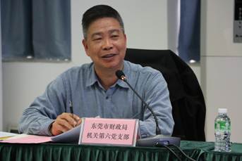之后,东莞市财政局机关第六党支部的唐柏胜同志进行主题为“台湾,中国复兴的试金石”的国防建设主题党课。唐科长深入浅出地从台湾省的地理位置、台湾问题的历史由来、当前形势及未来发展等方面进行分析,最后以习近平总书记指出的“实现祖国完全统一,是实现中华民族伟大复兴的必然要求”表达对完成解放台湾统一祖国的热切盼望。
