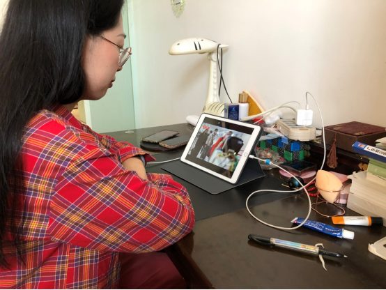 图四:支部党员边若璇同志观看纪录片