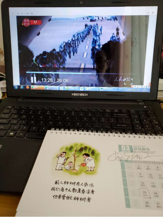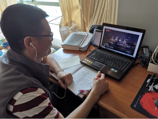 图二:支部党员林源同志观看纪录片