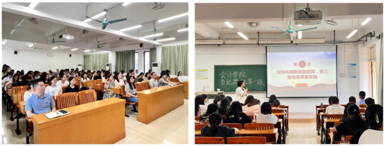 为推动学习贯彻习近平新时代中国特色社会主义思想和党的二十大精神主题教育走深走实,扎实推进“高质量党建育人+思政课堂”专项模块工作,切实加强新生党的知识教育,2023年9月19日下午,太阳成集团tyc7111党总支书记李安兰教授以“推动党的二十大精神入脑入心,学习贯彻习近平新时代中国特色社会主义思想”为主题,为太阳成集团tyc7111新生讲授新学期“思政第一课”。学院党总支副书记邓楚云,各学生党支部书记、委员参加了学习。