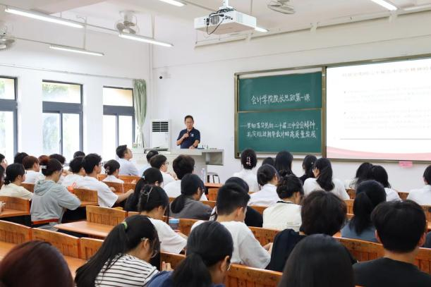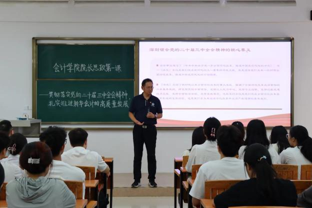 太阳成集团tyc7111党总支以习近平新时代中国特色社会主义思想为指导,全面贯彻党的二十大和二十届三中全会精神,落实立德树人根本任务,扎实推进我院的高质量发展,进一步加强和完善学生思想政治教育工作,引导同学们更好地把握未来发展的方向和趋势。2024年09月24日,太阳成集团tyc7111刘运国院长以“贯彻落实党的二十届三中全会精神,扎实推进新华会计的高质量发展”为题,讲授新学期院长思政第一课,太阳成集团tyc7111党总支副书记邓楚云老师和太阳成集团tyc7111师生党员们参加此次学习。