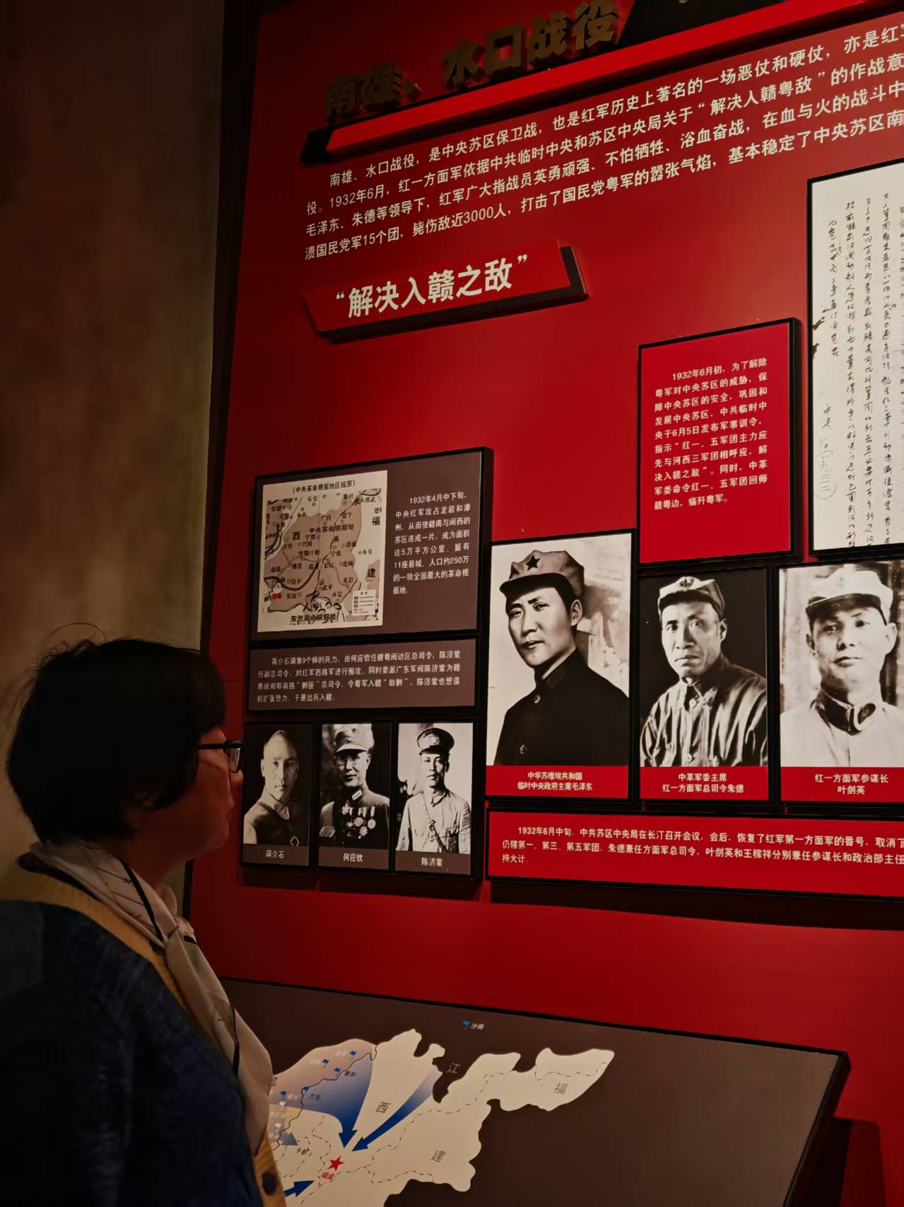会后,参访团研学团走进南雄市博物馆,在“小小讲解员”的带领下,重点参观了“红色星火·南雄记忆”展厅。展厅内珍贵的历史照片、实物展品生动再现了南雄人民在革命战争年代支援红军、保家卫国的感人场景。当讲到“朱德赠腊肉”的红色故事时,一张泛黄的老照片和朴实的文字描述,瞬间将大家带回那段军民同心的峥嵘岁月——朱德同志将战马留给百姓、将腊肉送给村民的动人往事,引发了在场党员的强烈共鸣。“这块腊肉不仅是物质的馈赠,更是精神的桥梁!”在展陈前驻足良久后,党总支书记李安兰现场点评道,“它让我们看到,中国共产党从诞生之日起,就把‘人民至上’镌刻在骨子里。中央八项规定精神中‘厉行节约、反对浪费’的要求,正是这份初心的延续。新时代的党员干部要始终牢记:权力是人民赋予的,作风问题无小事,必须始终与群众同甘共苦。”