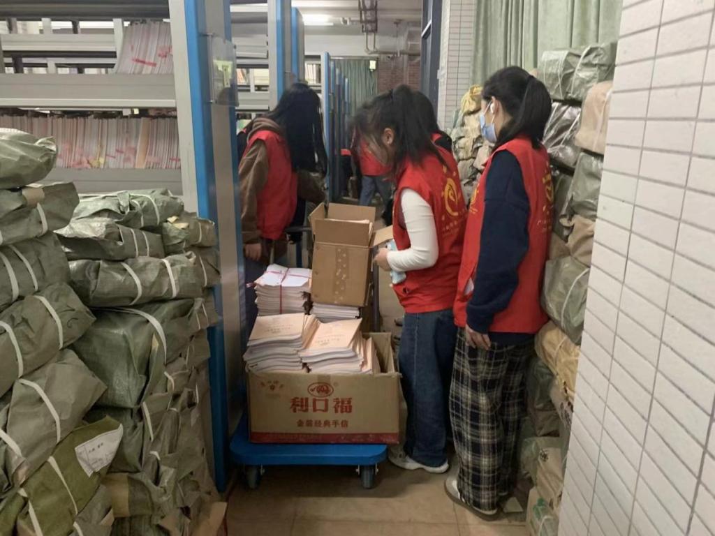 活动启动时,志愿者们早早抵达现场,统一穿着象征服务精神的志愿者服装,怀揣饱满的热情与坚定的责任感,蓄势待发。随着活动步入正轨,志愿者们迅速投身紧张的工作,在指导老师的悉心指导下,首先将存放于定静一的毕业论文图书打包转移至格物三区域,继而对迁移后的论文进行精细分类整理。在团队负责人的协调下,志愿者们分为多个小组,分工明确,有的专注论文图书打包,有的负责已打包论文的搬运。面对厚重繁复的论文材料,他们听从指挥,团结协作,无论搬运过程多么艰辛,都未曾发出半句怨言,而是充满热情且耐心地完成了毕业论文的搬运与整理工作,从而为全校师生提供了便利的论文借阅条件,以实际行动传递青春正能量。
