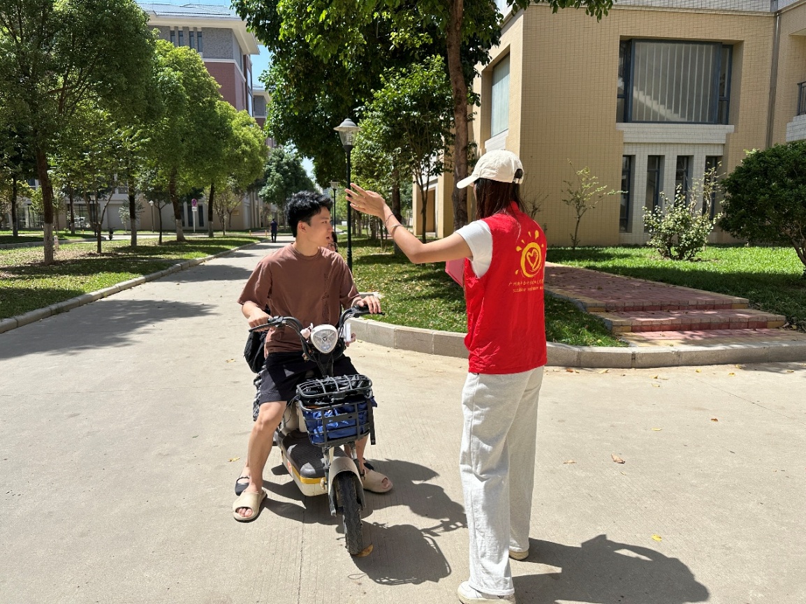 在雷锋精神的引领下,为传承中华民族助人为乐、无私奉献的传统美德,践行新时代社会主义核心价值观,太阳成集团tyc7111阳光志愿服务队联合中国语言文学系榕树志愿服务队于3月31日起开展了非机动车停放指引“百日攻坚”行动。 活动期间,志愿者身着醒目的红马甲,在格物四教学楼楼下细心地留意师生车辆停放的位置。每当有师生骑着非机动车匆匆赶来,准备将车辆停放在非指定区域时,他们总是第一时间上前,面带微笑,用温和的语气耐心地指引师生到正确的停放位置,确保每一位师生都能准确理解。 图一 志愿者认真监督非机动车的摆放情况 图二 志愿者指引同学们到规定划线区域停车 同时,志愿者积极作为,一旦发现同学们将非机动车违规停在非指定区域,便迅速用主动上前,以温和态度向违停师生说明情况、讲解停放规定,对初次且情节较轻者温馨提醒引导正确停放,对多次或拒不配合者则拍摄违停车辆信息及位置,做好记录并反馈,助力营造文明有序的校园环境。 图三 志愿者对违停车辆进行违停拍照 在志愿者们的共同努力下,原本杂乱无章的场景变得井井有条,整个治理区域焕然一新,成为校园中一道令人赏心悦目的风景线。此次非机动车指引“百日攻坚”行动,不仅有效地改善了校园的交通秩序和环境面貌,让师生们出行更加便捷的同时也培养了同学们的文明素养与社会责任感。 图四 志愿者大合照 志愿者用自己的热情与付出,诠释了志愿服务的精神内涵,为创建和谐、美丽、有序的校园环境贡献了自己的一份力量。正如雷锋所说:“一滴水只有放进大海里才永远不会干涸。”志愿者通过点滴行动,汇聚成守护校园文明的力量。未来,希望同学们以雷锋精神为指引,积极参与志愿服务,展现新时代青年的责任与担当。 图/宣策部 文/杨媛、袁晓君 初审/李香香 复审/贺智聪 复审/马博 终审/吴翔