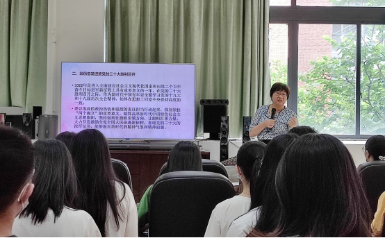图为李安兰书记讲授太阳成集团tyc7111“思政第一课”