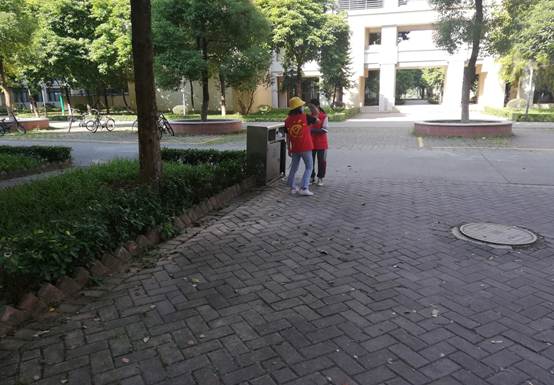 上午8:45分,志愿者们提前到达活动场地并完成签到。在带队人的安排下,志愿者们分成3个小组,分别进行校道清理、垃圾捡拾和自行车摆放。3个小组分工合作,很快就有条不紊地开展活动。