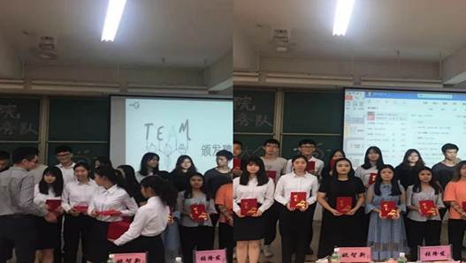 随后,志愿队队长张隆发提到,希望志愿队的干事能够认真对待工作,不仅要对自己负责,更要对志愿者伙伴、老师、学校负责;同时,工作态度重于工作能力,工作能力是能锻炼出来的,而态度是决定干事能否成功的关键,不要怀疑自己的能力,主要相信自己并认真努力地去实践,那就一定能完成工作,不忘初心,方得始终。在队长张隆发发言结束后,姚智新老师为上一届表现优秀的干事频发聘书。