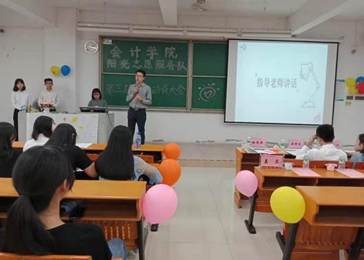 大会伊始,姚智新老师对服务队的新干事们表示热烈的欢迎,希望新干事们能够团结互助,工作尽责,在志愿者岗位上展示出财会学子的志愿风采,将无私奉献的精神传递下去。