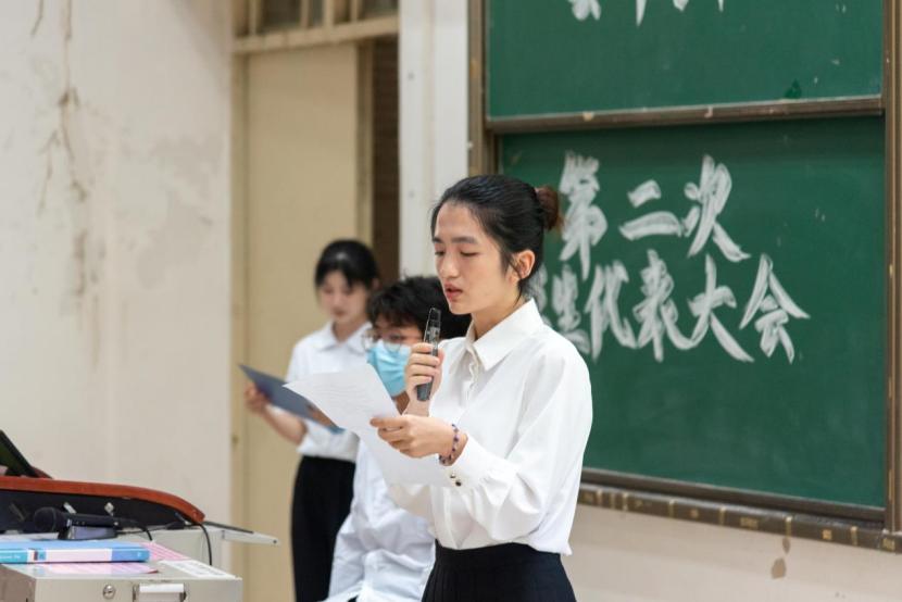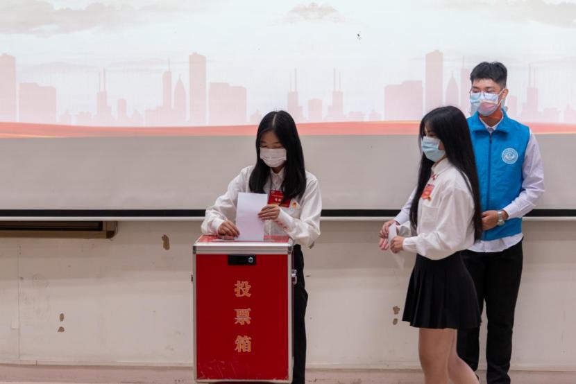 大会第八项,与会代表以无记名投票方式差额选举产生新一届学生会主席团。