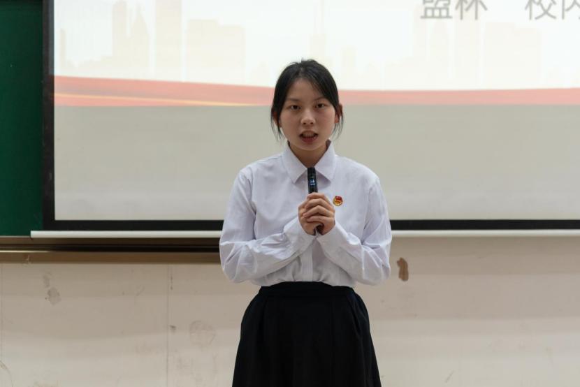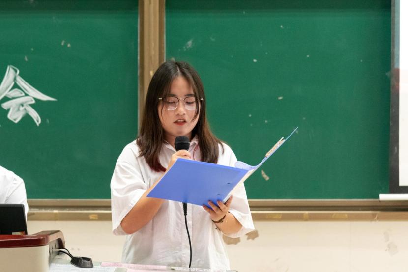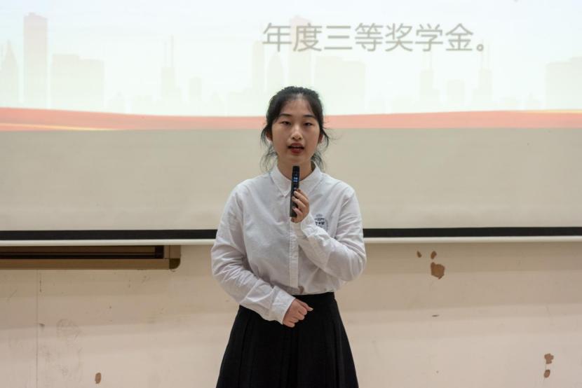 大会第三项,太阳成集团tyc7111第四届学生会执行主席邓紫娜作学生会年度工作报告。她回顾总结了学生会一年以来各方面的工作,对学生会未来的发展提出了新的展望!