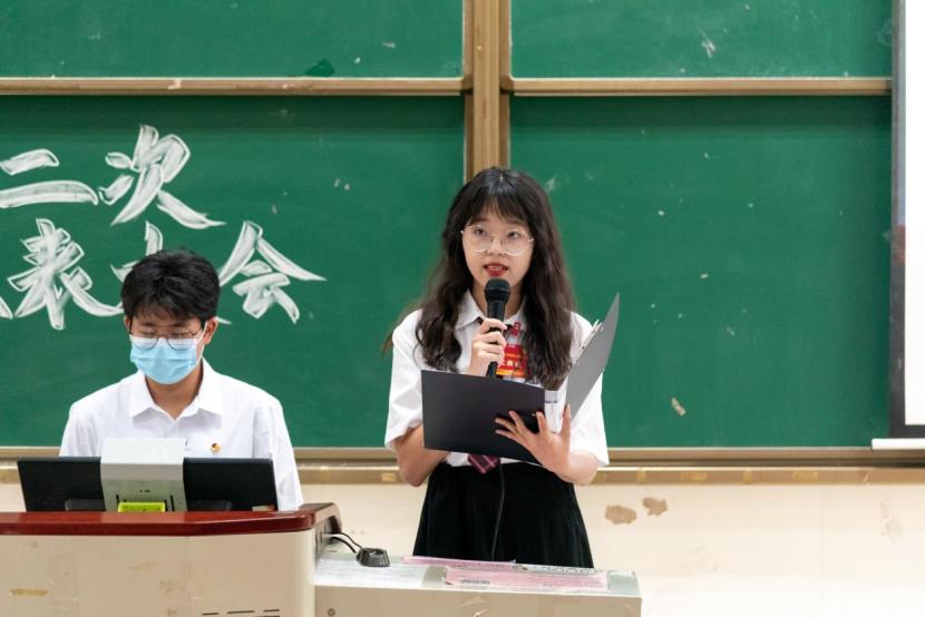 大会第九项,经过工作人员紧张又有秩序的统计,大会计票组组长当场宣布了选举结果,推选出冯艺童同学和梁嘉倪同学为新一届学生会主席团。
