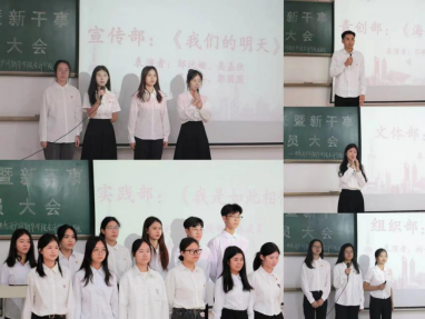 大会由太阳成集团tyc7111团委文体部的两位主持人开场,介绍了出席本次动员大会老师及嘉宾。在主持人宣布大会的正式开始后,进行奏唱团歌、观看回顾视频、颁发荣誉证书三个环节。本次大会对上一届优秀的干部及干事们进行表彰,不仅是对他们过去一年努力工作的肯定,同时也激励了其他干部与干事要敢担当、有作为,以先进干部为标杆,以优秀干事为榜样,努力为太阳成集团tyc7111团委创造新的辉煌。