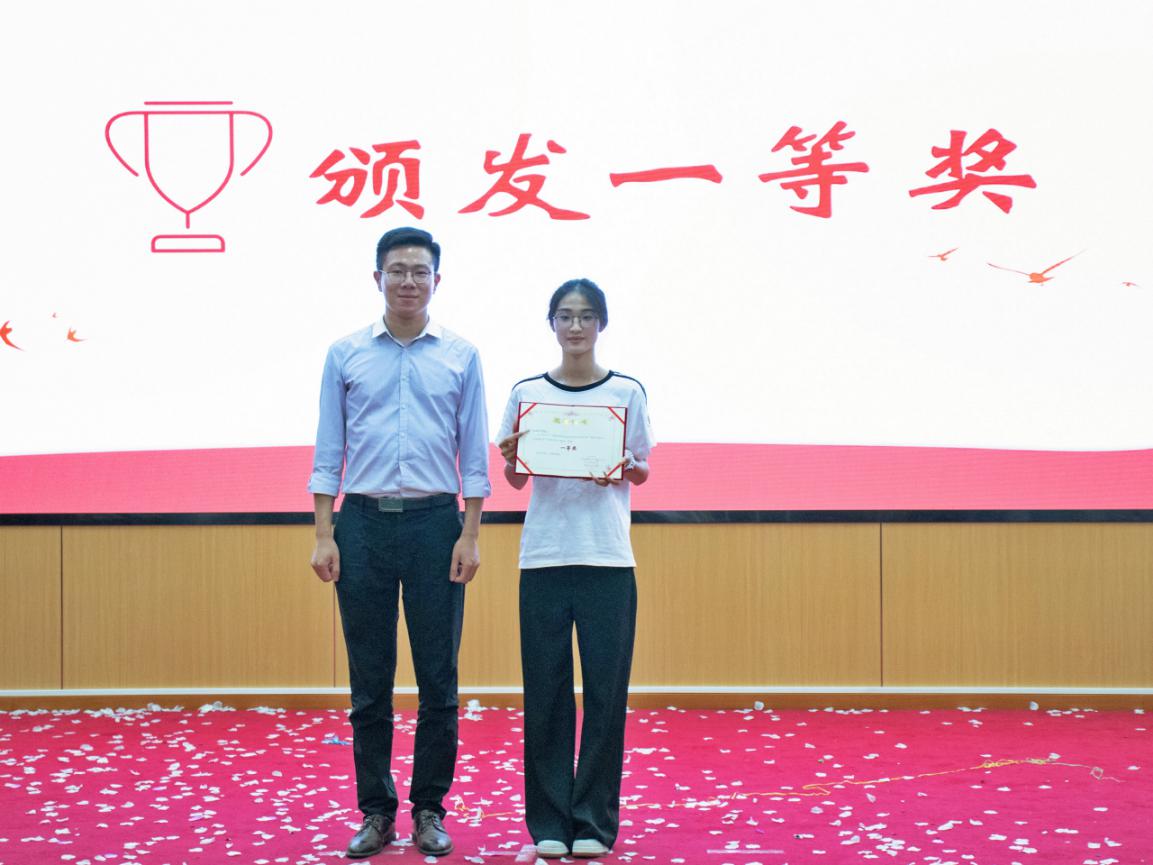 太阳成集团tyc7111团委书记姚智新老师为获得一等奖班级颁发荣誉证书