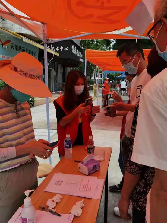 他们不畏艰辛,白天深夜协助小区开展一轮又一轮大规模核酸检测,统计小区核酸检测数据。检测期间,他们引导社区居民使用手机扫码,帮助信息输入,提醒大家提前生成葵花码,以免现场网络塞车,协助不懂用手机的老人家,耐心地解释流程,大大加快了核酸检测速度,维持良好的现场秩序。
