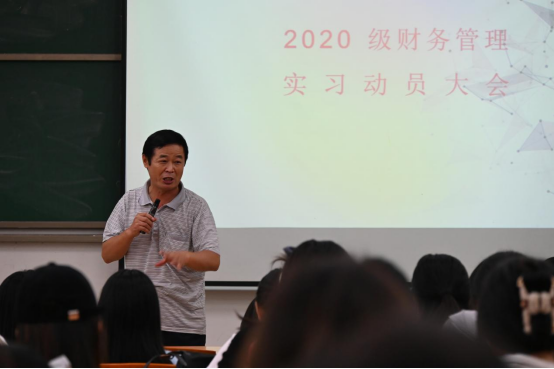 图二:财管专业副主任熊诗忠老师向同学们讲解实习问题
