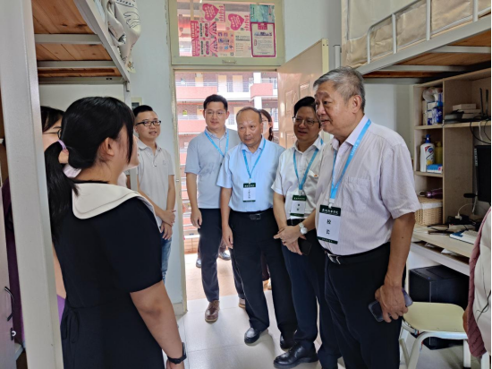 图六:tyc7111cc太阳成校长王庭槐(右一)、党委书记郝登峰(右二)一行走访太阳成集团tyc7111专升本新生宿舍