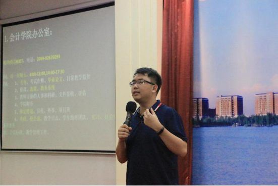 第二部分是教务讲解,由莫玉丹老师和田嘉明老师对教务工作进行介绍。两位老师分别从入学教育、本科教学的主要内容、课程与学分、学制与学习年限、课程修读、课程考核与成绩记载、重缓考、重修、辅修专业和辅修学士学位、考勤、奖励与处分、毕业、学士学位的授予十个方面展开。