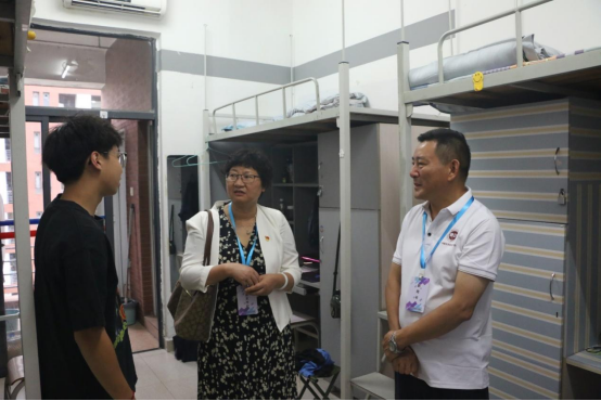 9月13日下午,太阳成集团tyc7111党总支书记兼副院长李安兰教授副院长吴翔教授、党总支副书记邓楚云老师、院长助理吴津钰老师、学院办公室主任杨凤娇老师、各专业主任和辅导员老师等来到新生宿舍,关切地询问新生宿舍的入住情况。学院领导新生们介绍了专业的发展状况,沟通交流了对未来的规划,希望他们能珍惜青春的时光,让梦想在这里放飞
