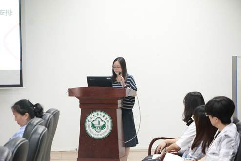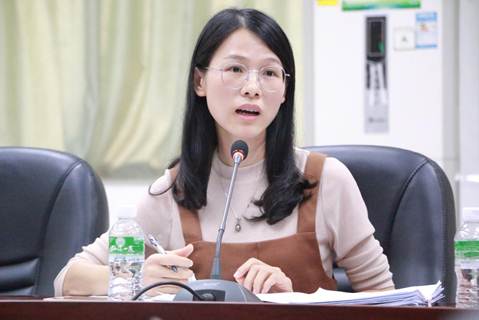 接着,教务秘书陈美诗老师就2020届的毕业论文工作时间安排及论文格式规范进行介绍。陈美诗老师指出本届毕业论文以线下指导为主,线上指导为辅的方式进行,并着重强调指导老师在指导论文工作中的一些操作指引。