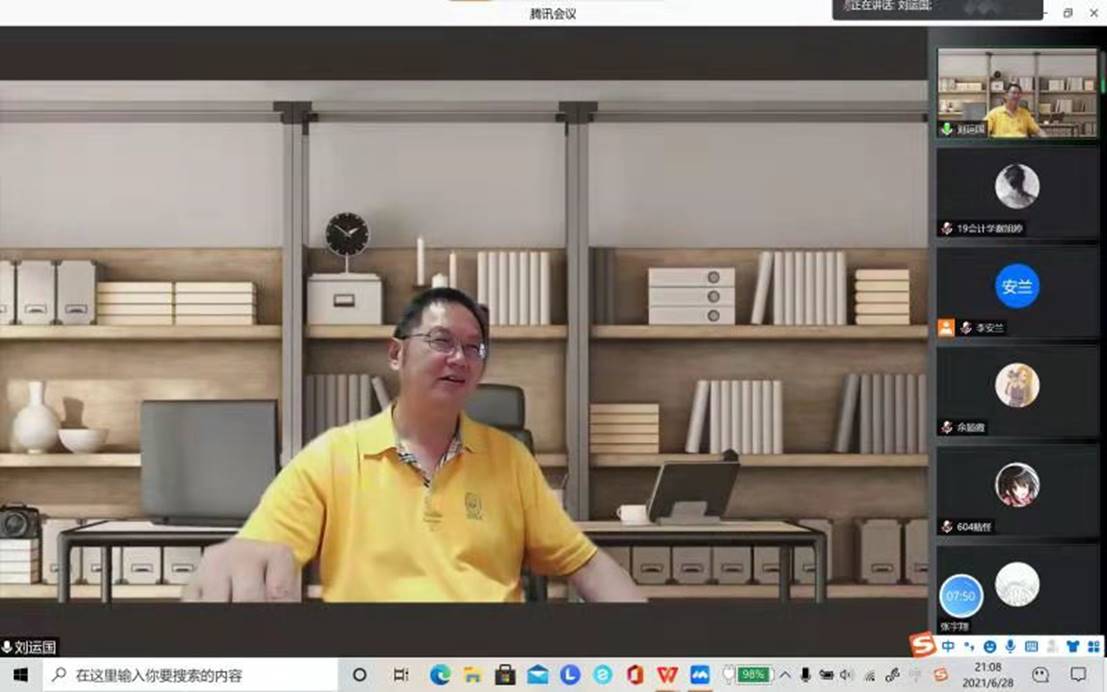 图一:刘运国院长在太阳成集团tyc71112021届毕业生线上答疑会上发言