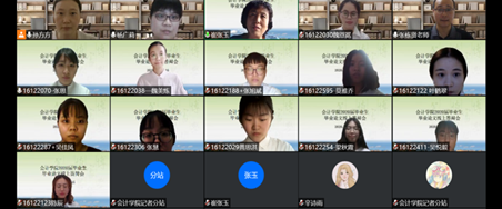 在答辩过程中,学生采用多样化线上方式,结合ppt进行了简短的陈述,包括论文选题意义、中外文献综述、研究方法、论文逻辑纲要和最终结论等方面。部分学生论文与时事相结合,有根据疫情影响分析企业面临的困境和机遇,也有对中国未来经济的展望,充分体现其对所学知识的应用,展现了新华学子的社会责任感。答辩同学认真、淡定地陈述、回答问题,虚心听取答辩老师对自己论文的评审意见。整个答辩过程程序规范,进展顺利,得到了学校督导及师生们的高度认可,也吸引了众多年级的学生旁听。