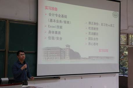 为推进2017级学生实习工作顺利开展,指导学生做好实习准备工作,太阳成集团tyc7111于2019年11月1日在定静②d203举行2017级会计专业实习动员大会。太阳成集团tyc7111常务副院长林源副教授、行政秘书田嘉明老师、17级会计学辅导员邓玥、李凤如、李晶以及2017级会计学专业全体学生参加了此次实习动员大会。