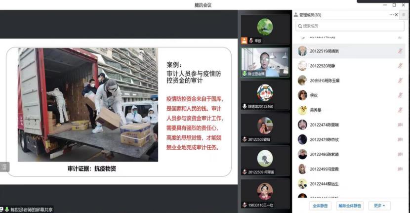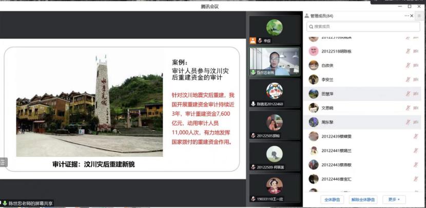 陈世忠老师从新时代中国特色社会主义审计思想出发,以疫情防控资金审计和汶川灾后重建审计为例,讲解审计证据的种类和特点,从证据的数量和质量两方面巧妙地切入思政点,强调审计人员要注重科学取证和依法取证。从思想政治上,强调为国审计,执审为民,弘扬独立客观公正的审计精神。他在课堂上采用案例分析法,结合微视频,生动阐述了疫情防控资金审计的取证重点以及取证方法,同时在学习通线上教学平台上传《审计学》课程的最新教学资料,悉心梳理思政资源,达到了如盐入水的良好效果。