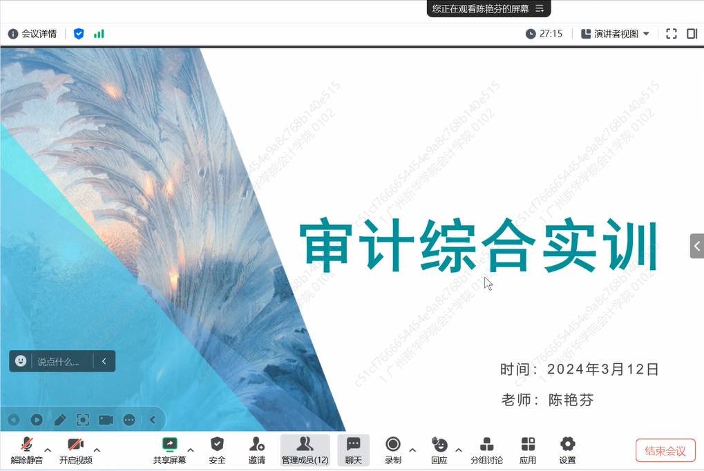 审计系陈艳芬老师介绍《智能审计实践教学平台》项目
