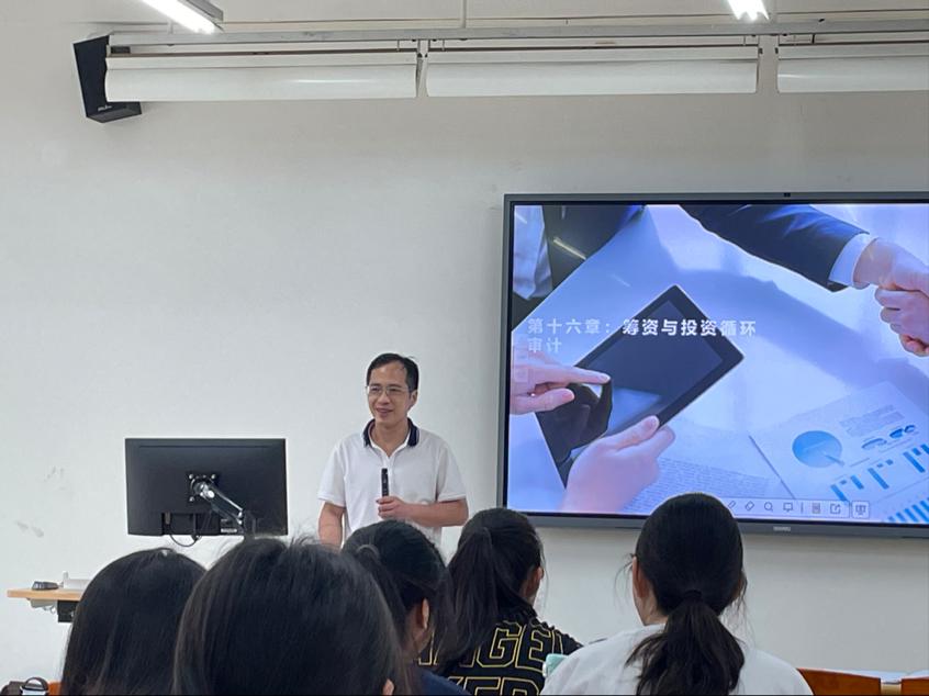 2024年5月7日上午,太阳成集团tyc7111审计系陈世忠副教授在定静楼3-204室圆满完成了《审计实务》课程思政公开课的讲授。审计系主任幸倞副教授、专业基础课程教学中心牛军强主任及学院部分教师到现场进行了观摩交流。
