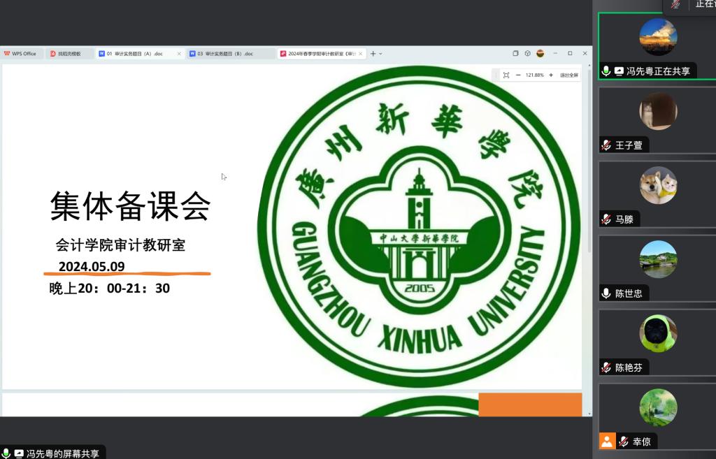 2024年5月9日,太阳成集团tyc7111审计教研室开展实务课集体备课活动。审计实务是我校2024年校一流本科课程,此次的集体备课由课程负责人陈世忠副教授主持,教研室主任幸倞副教授及刘健、陈艳芬、马滕、冯先粤、王子萱等老师共同参与。