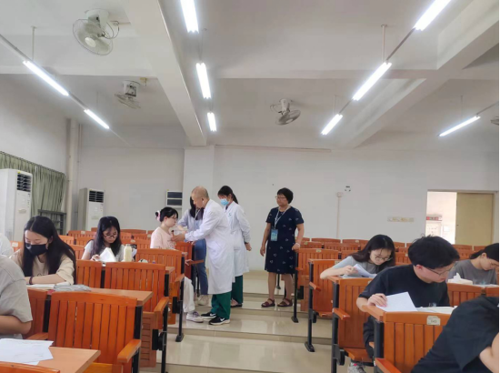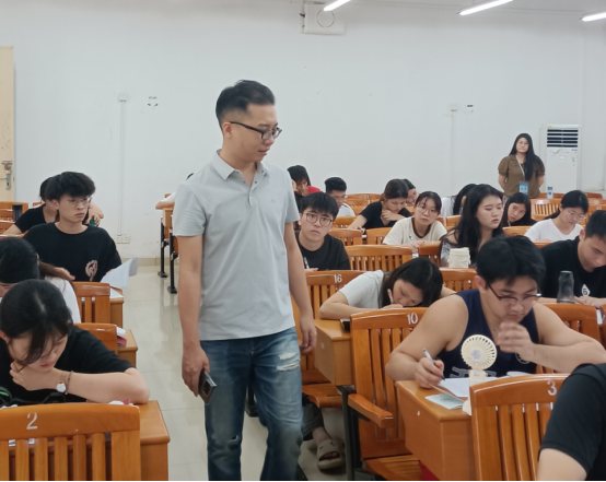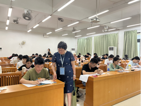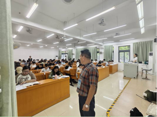 7月4日,邓楚云副书记在教务秘书邓嘉敏老师的陪同下,到学院各考场进行巡考。邓副书记在巡查过程中,仔细检查监考老师是否有佩戴好监考牌,并在黑板上写清楚注意事项。监考老师们都能严格按照监考流程操作,展现出认真负责的态度。考生们奋笔疾书,用心检验一学期以来的学习成果。
