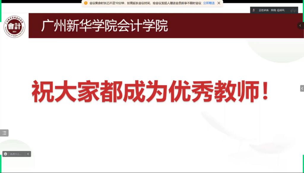 最后,吴翔副院长对新教师的加入再次表示热烈欢迎,他强调新教师应学习老教师的经验,加强交流与协作,迅速提升自身能力,并鼓励将所学应用于教学,共同为培养优秀会计人才贡献力量,谱写学院发展新篇章。