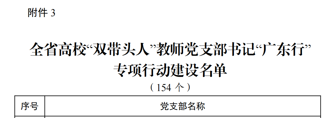 近日,中共广东省委教育工委公布了全省高校“双带头人”教师党支部书记“广东行”专项行动建设名单。我院教师第二党支部成功入选全省“广东行”专项行动。