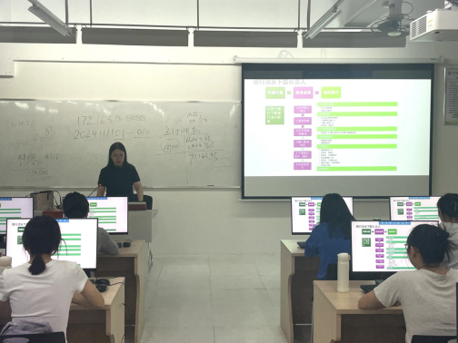 在观摩课上,伦妙兴老师以“银行流水自动下载”为实例,通过建行模拟平台,详细讲解了RPA技术如何高效完成银行流水的采集、处理与分析。通过清晰的流程设计、具体实例和实时操作演示,伦老师带领学生和在座教师深入了解了智能化流程的核心步骤及实际应用。这一生动的案例不仅展示了智能化工具如何简化会计流程,还帮助学生掌握了智能会计的实用技能,增强了他们对智能化财务的实际操作能力。