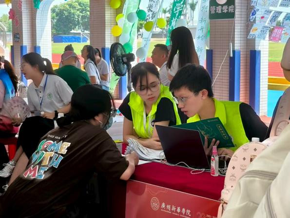 此外,我院于迎新点位专设辅导员及学生党员岗、专业教师咨询岗。当新生们在报到过程中遇到诸如党员发展、专业课程学习等疑问时,当值老师与学生党员一一耐心解答。