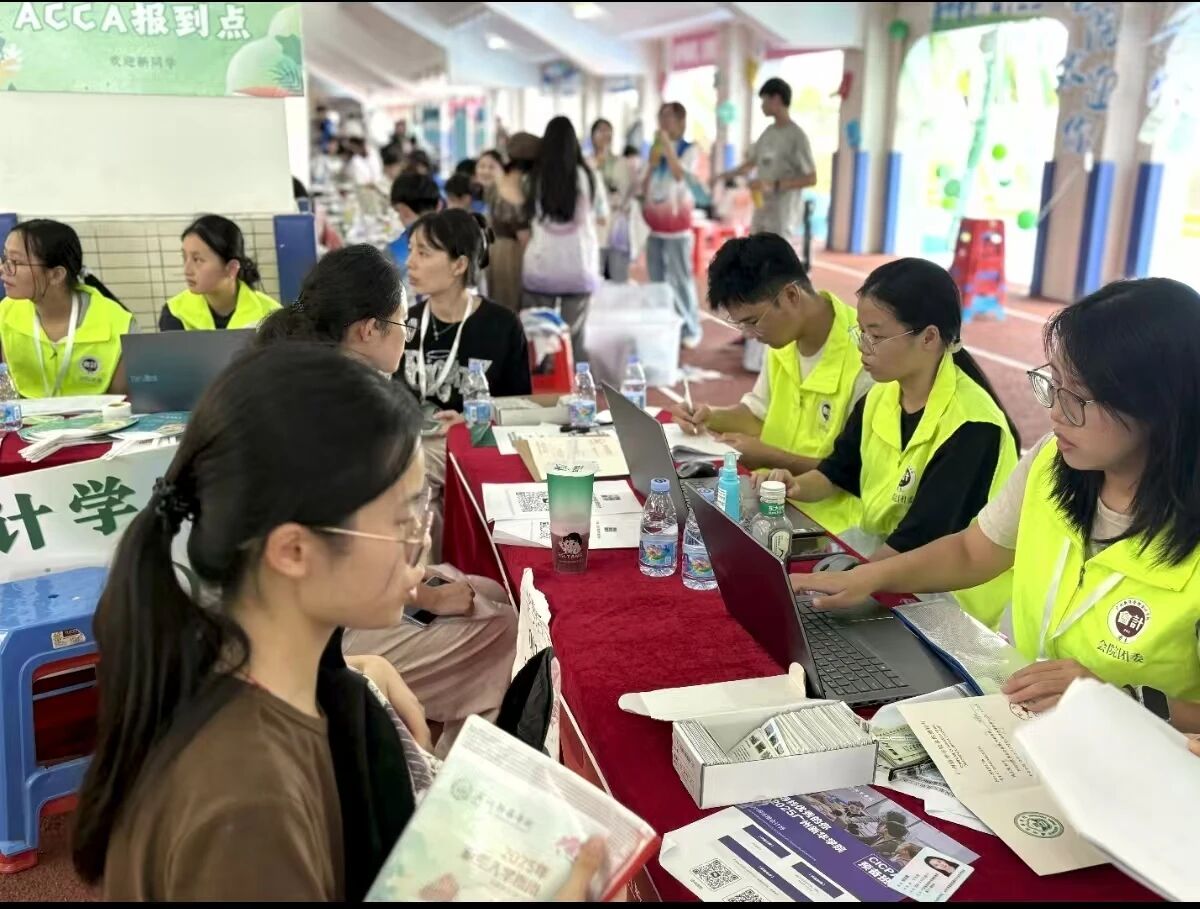 学院特别设立“党员先锋岗”,策划“师生面对面”流程,党员师生将亮明身份,以行动传递红色力量,为新生提供贴心指引与入党流程介绍等党的知识宣讲;专业教师现场解读会计、财务管理、审计学等专业的培养方案,帮助新生提前规划学业方向;新生辅导员热情迎接、温暖守护,时刻关注报到新生的动向,为其解答校园生活困惑,帮助其了解熟悉校园环境。
