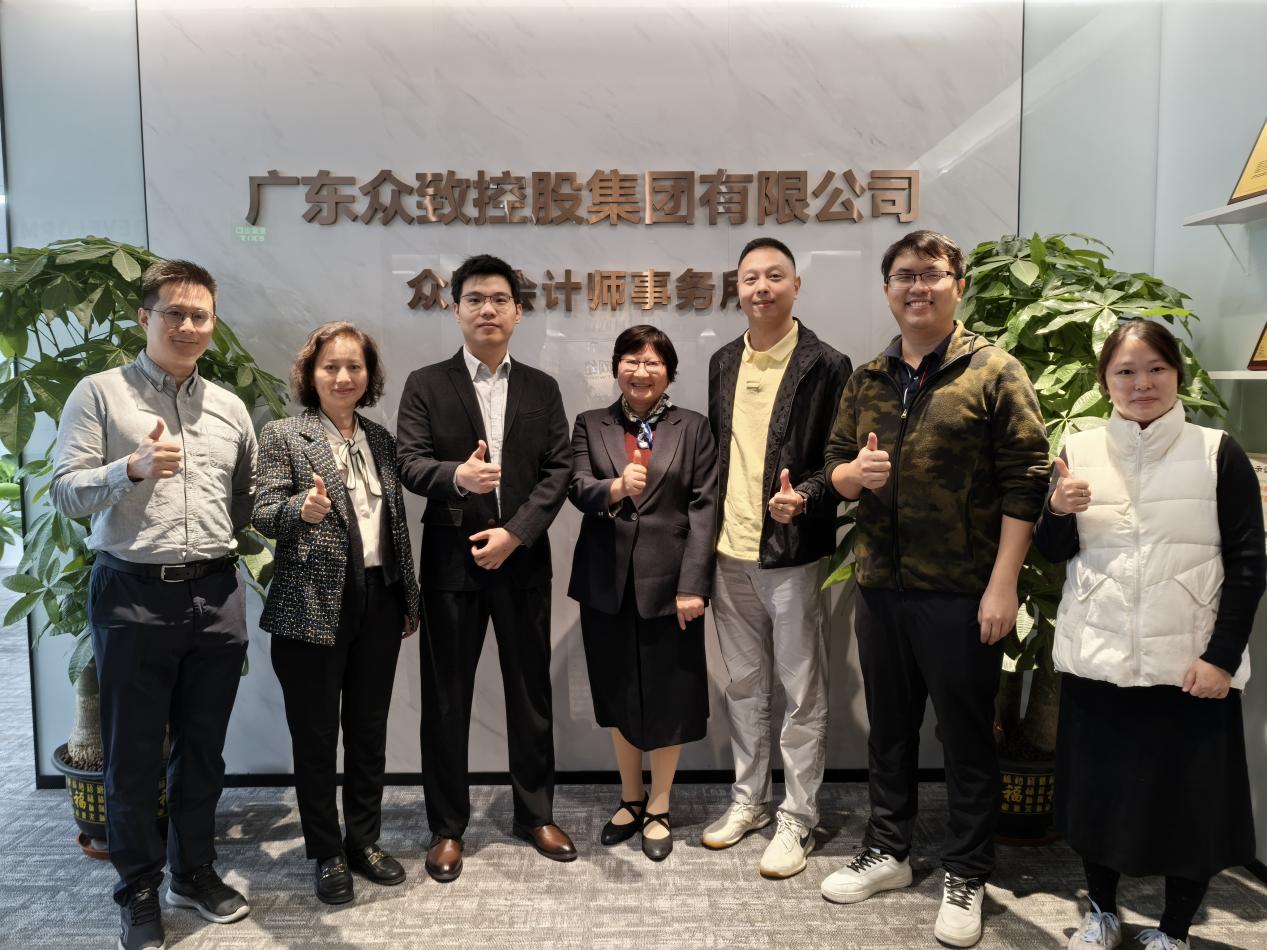 广东众致控股集团董事长林斌、会计事务所林总、人事处朱经理、洪经理等热情接待了学院一行,并陪同参观办公场所,详细介绍集团的发展历程、企业文化、主营业务及人才战略。