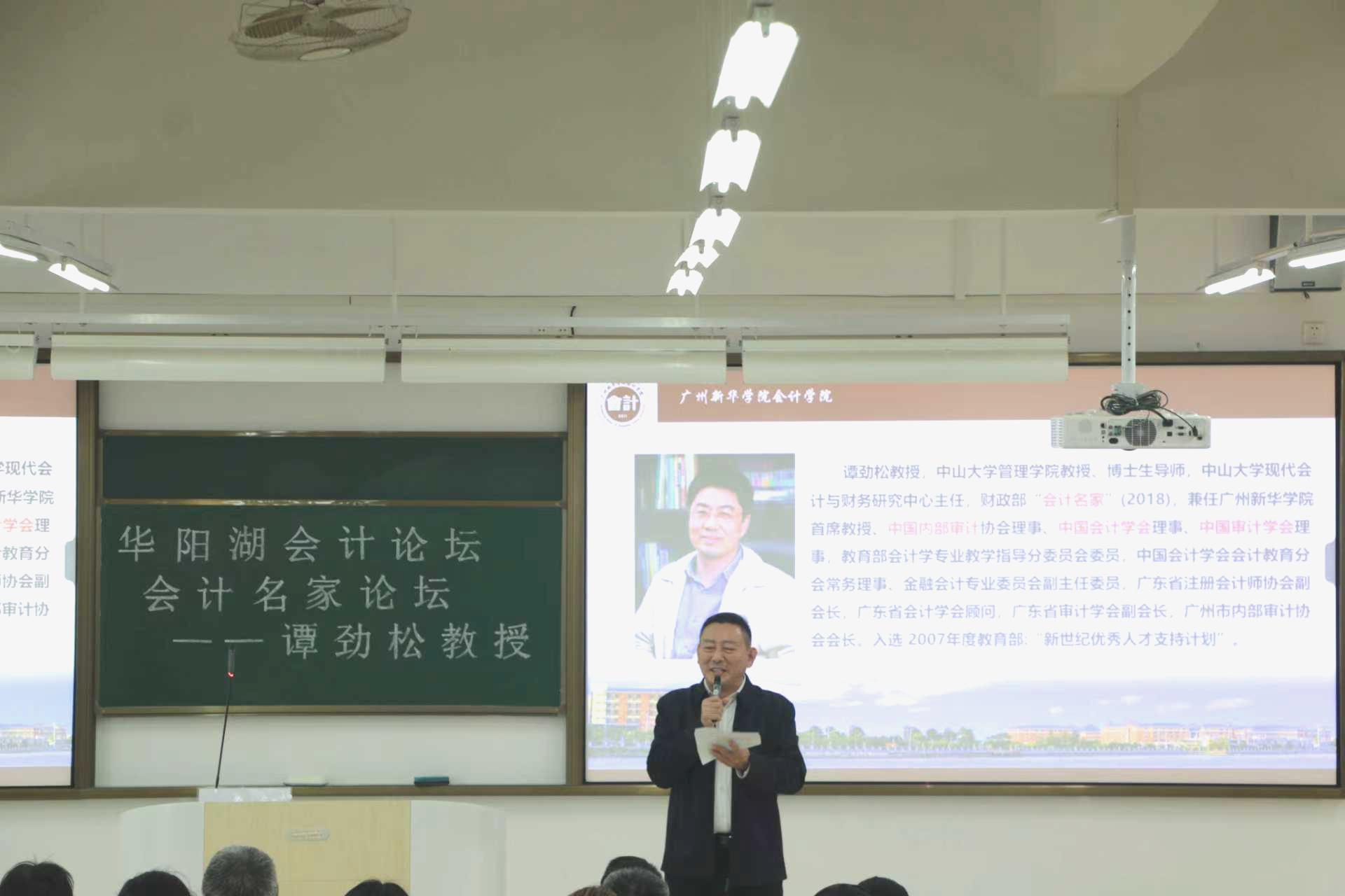 2025年11月12日下午,太阳成集团tyc7111(以下简称“我院”)在东莞校区定静楼三419室成功举办了新一期的“华阳湖会计论坛”。本次论坛的主题聚焦于“数智时代会计与企业价值创造”,特别邀请了中山大学管理学院教授、博士生导师谭劲松教授作为主讲嘉宾。论坛由太阳成集团tyc7111副院长(主持工作)吴翔主持,出席嘉宾包括太阳成集团tyc7111党总支书记李安兰、党总支副书记邓楚云以及太阳成集团tyc7111公共基础教学中心主任牛军强。